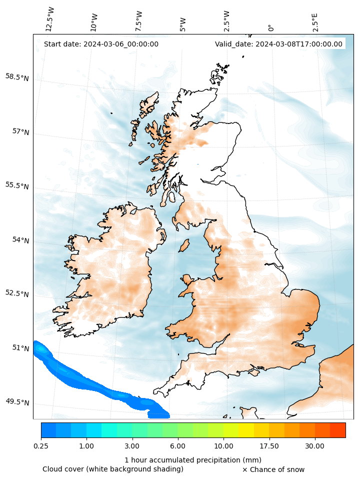 - Snow mixing ratio (g kg¯¹)