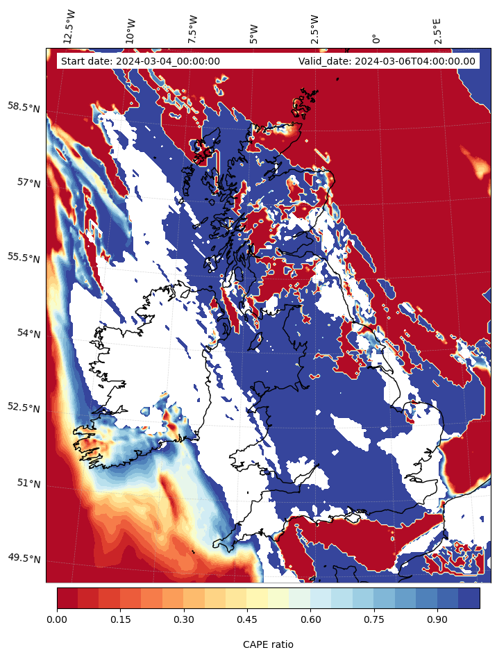 - Maximum CAPE (J/Kg)