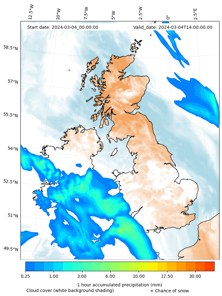 - Snow mixing ratio (g kg¯¹)