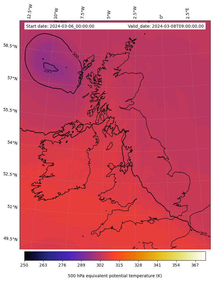 - Equivalent Potential Temperature (K)