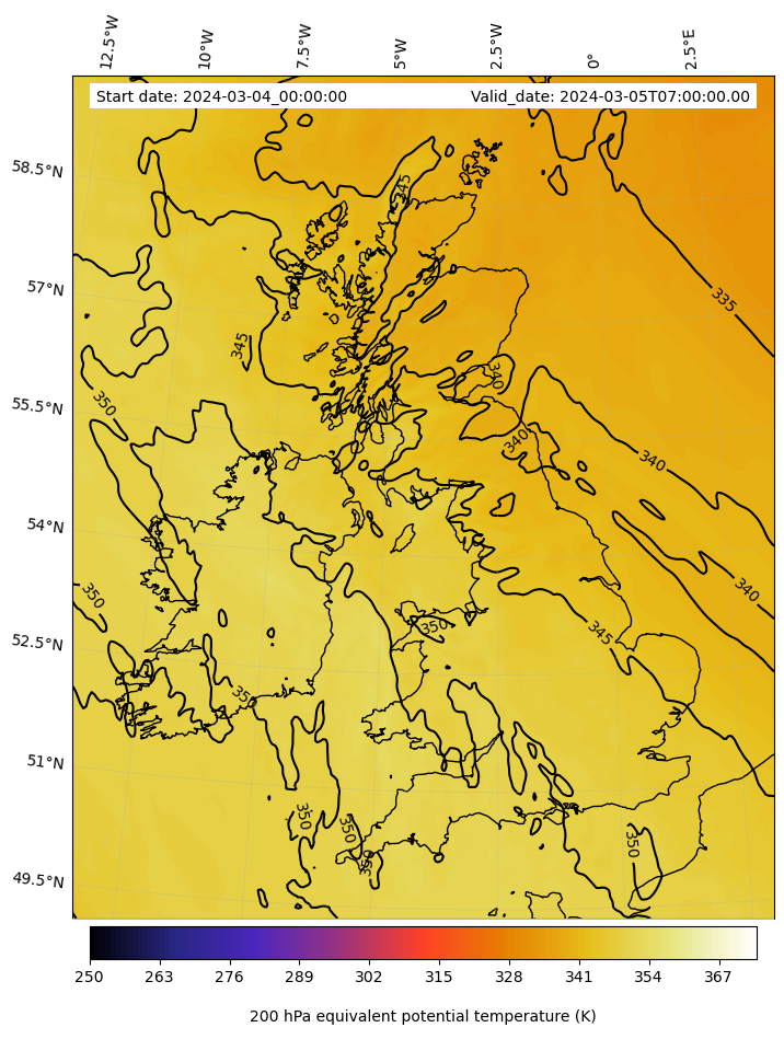 - Equivalent Potential Temperature (K)