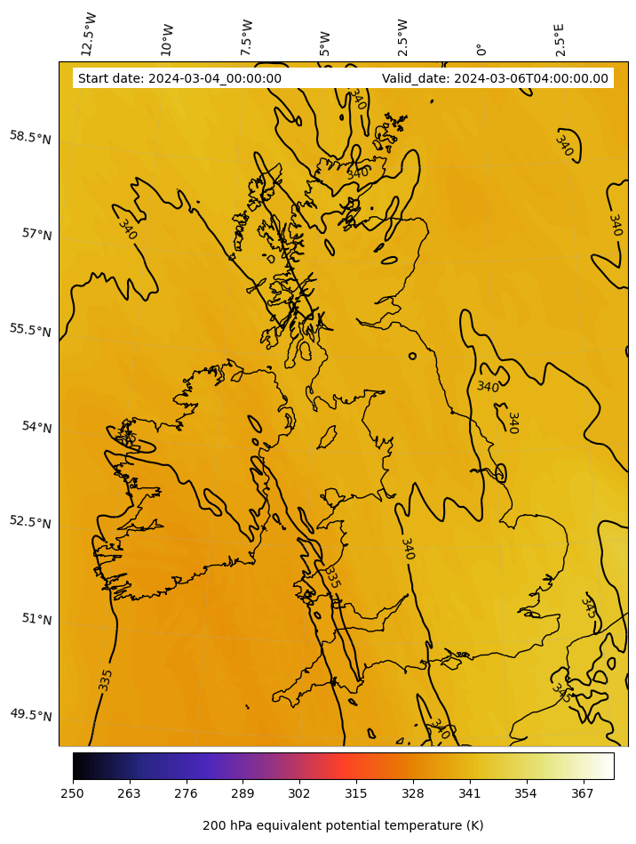 - Equivalent Potential Temperature (K)