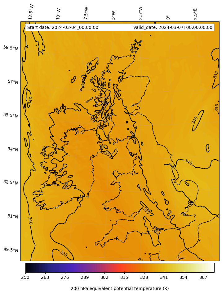 - Equivalent Potential Temperature (K)