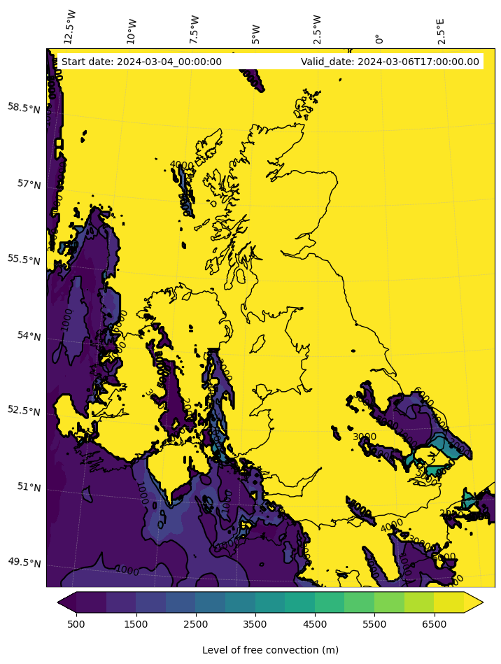 • Level of free convection (m)