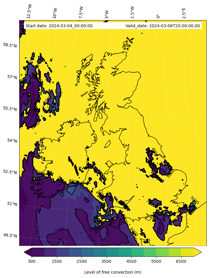 - Level of free convection (m)