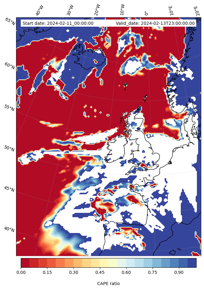 - Maximum CAPE (J/Kg)