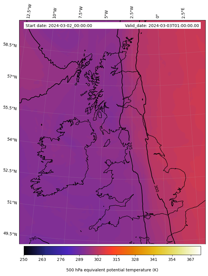 - Equivalent Potential Temperature (K)
