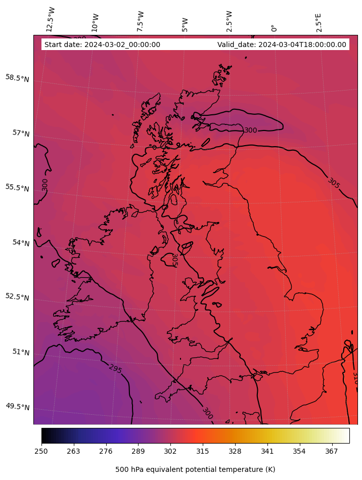 - Equivalent Potential Temperature (K)