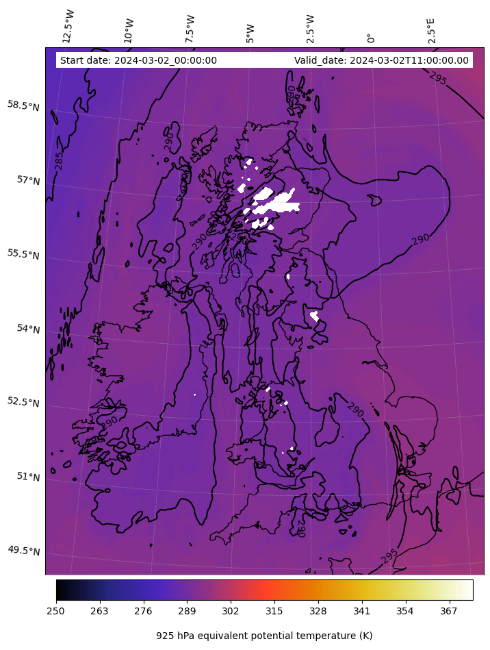 - Equivalent Potential Temperature (K)