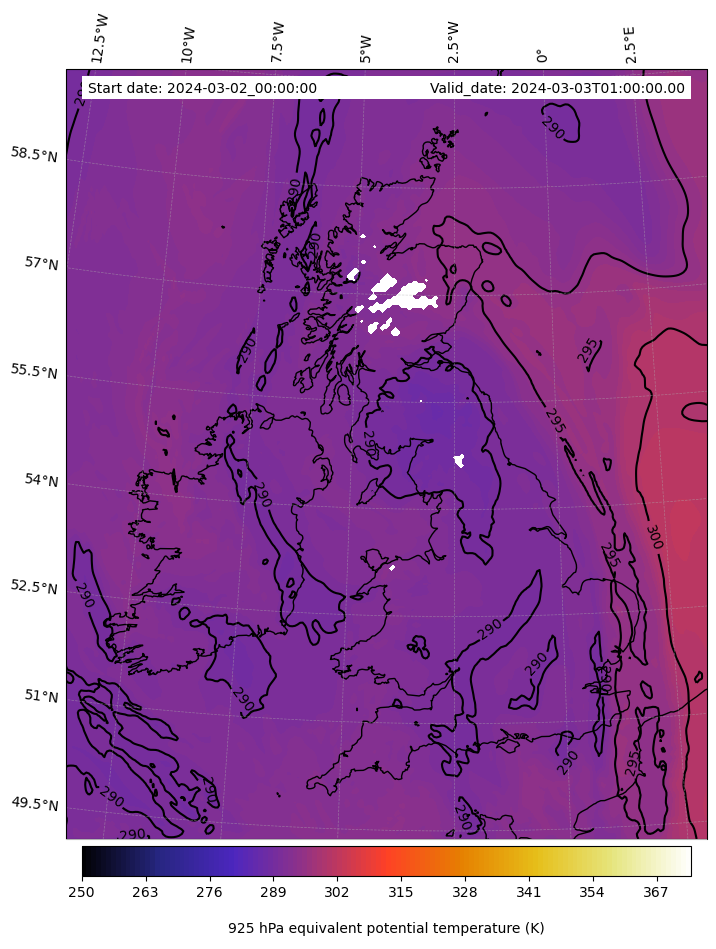 - Equivalent Potential Temperature (K)