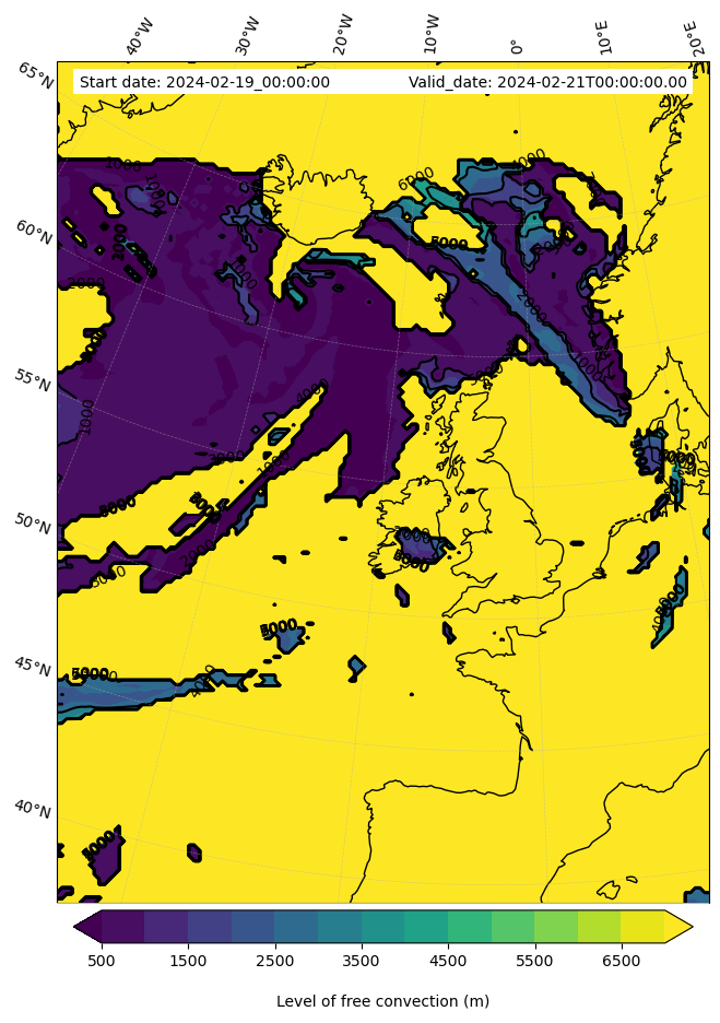 • Level of free convection (m)