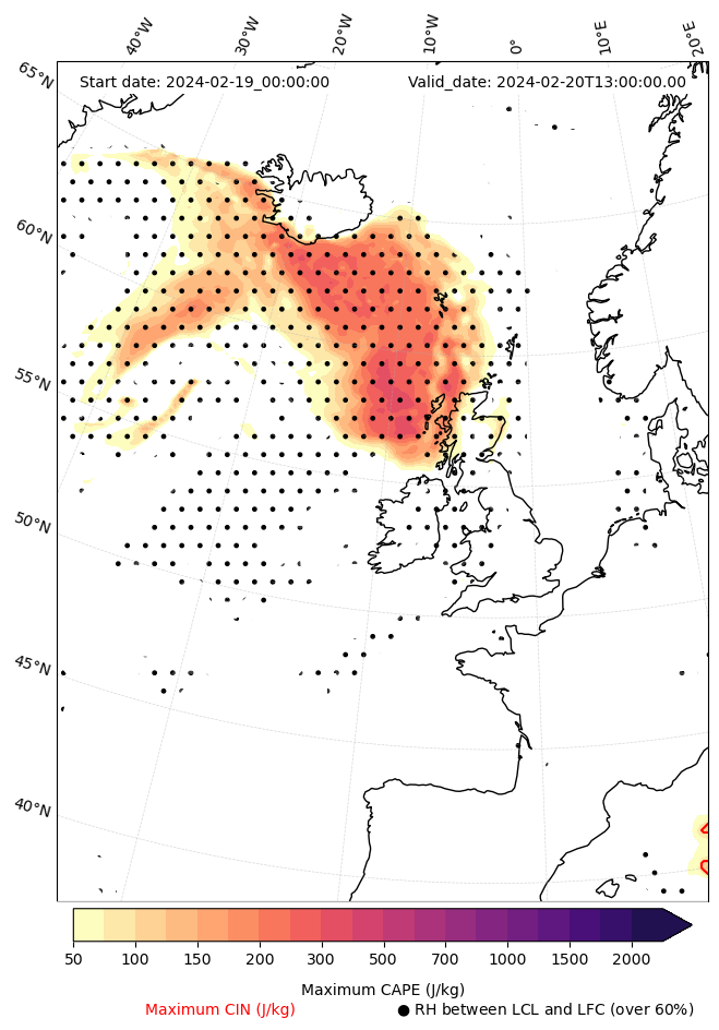 • Maximum CAPE (J/Kg)