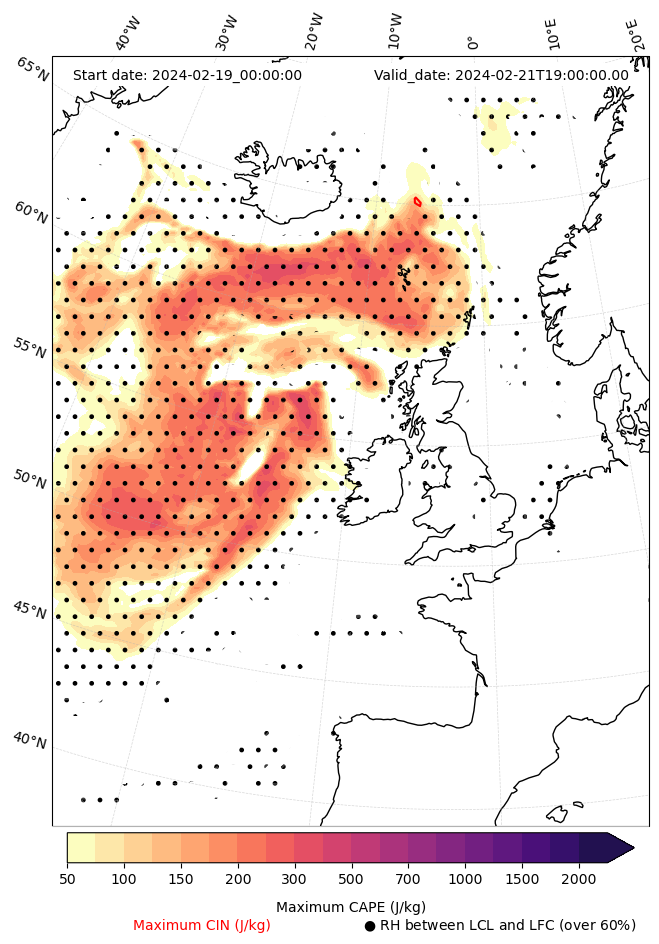 • Maximum CAPE (J/Kg)