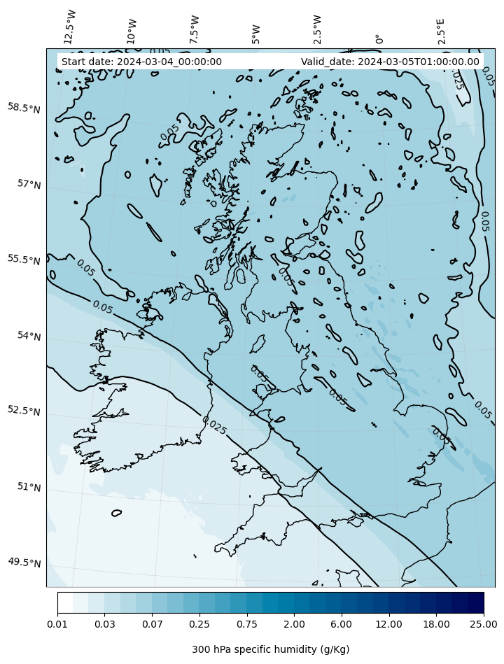 - Water vapor mixing ratio (g kg¯¹)- 300 hPa