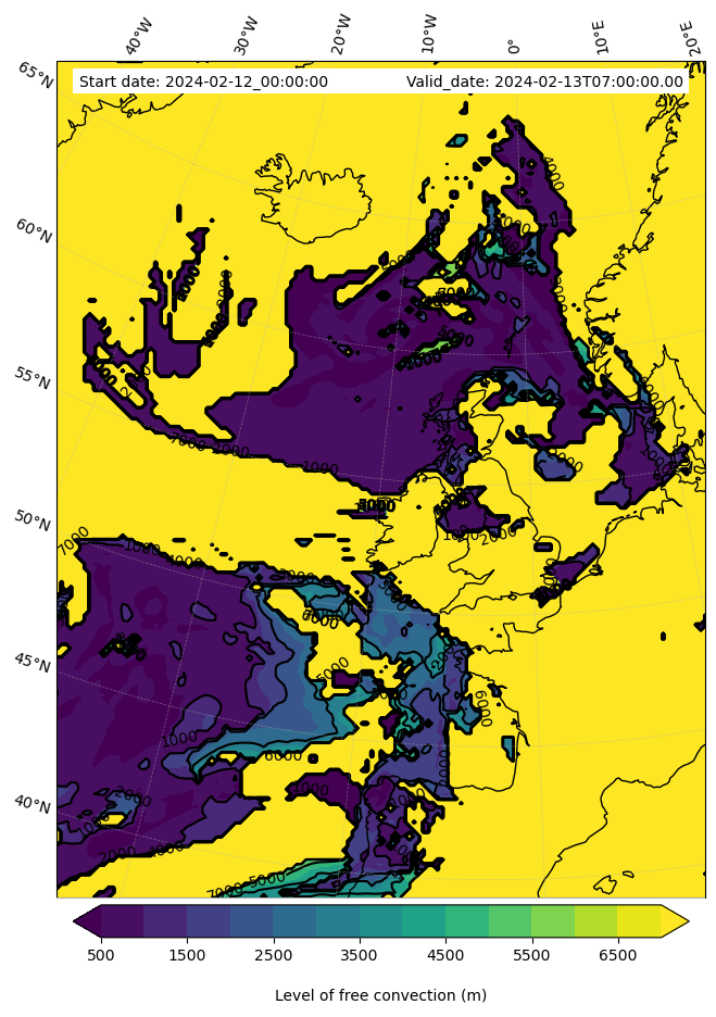 - Level of free convection (m)