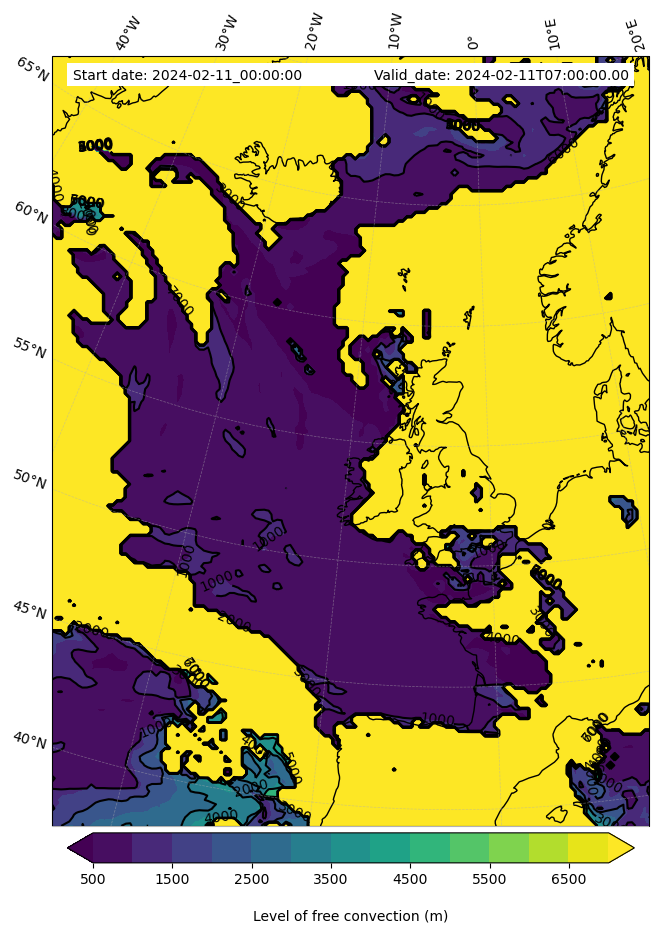 • Level of free convection (m)