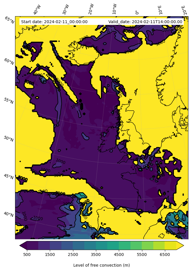 - Level of free convection (m)