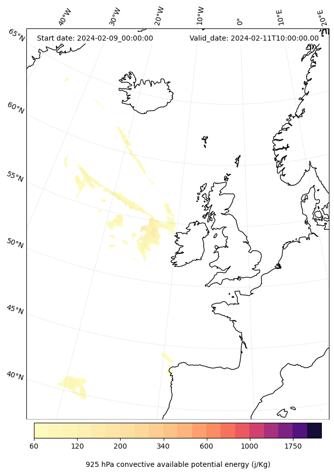 - Maximum CAPE (J/Kg)