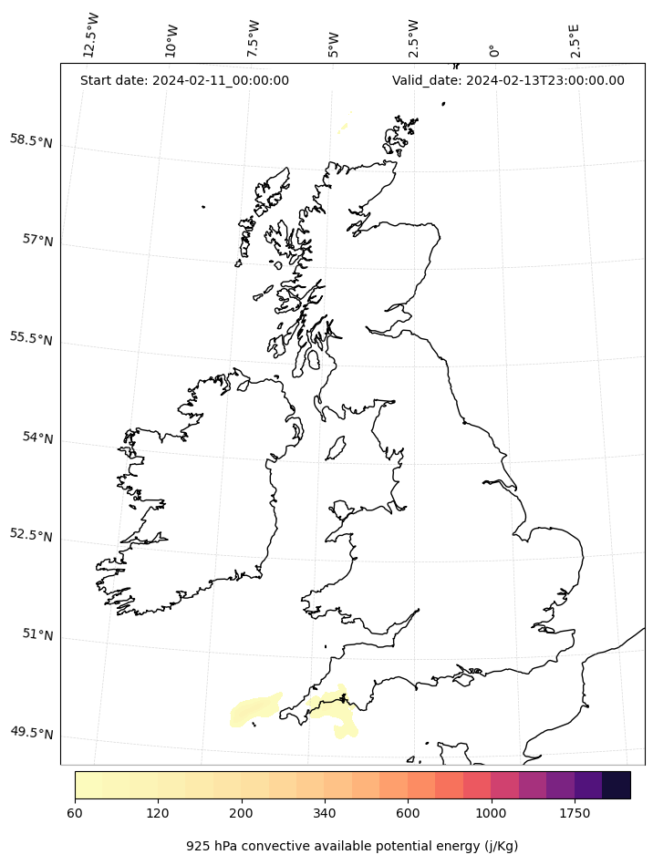 - Maximum CAPE (J/Kg)
