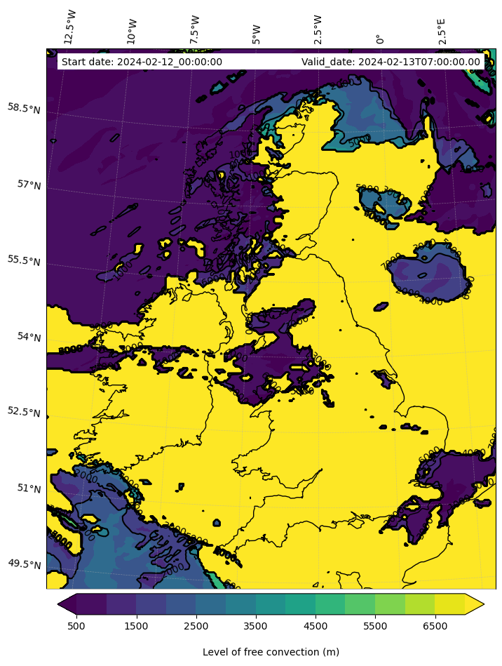 - Level of free convection (m)