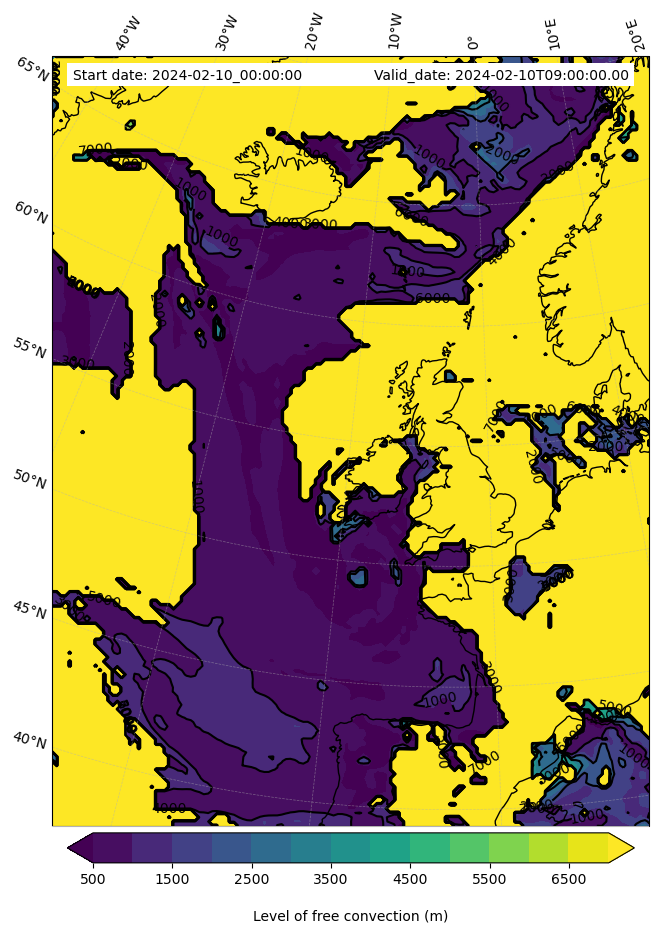 - Level of free convection (m)