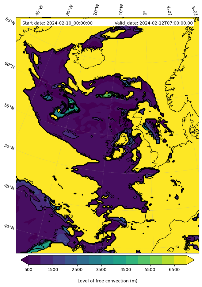 • Level of free convection (m)