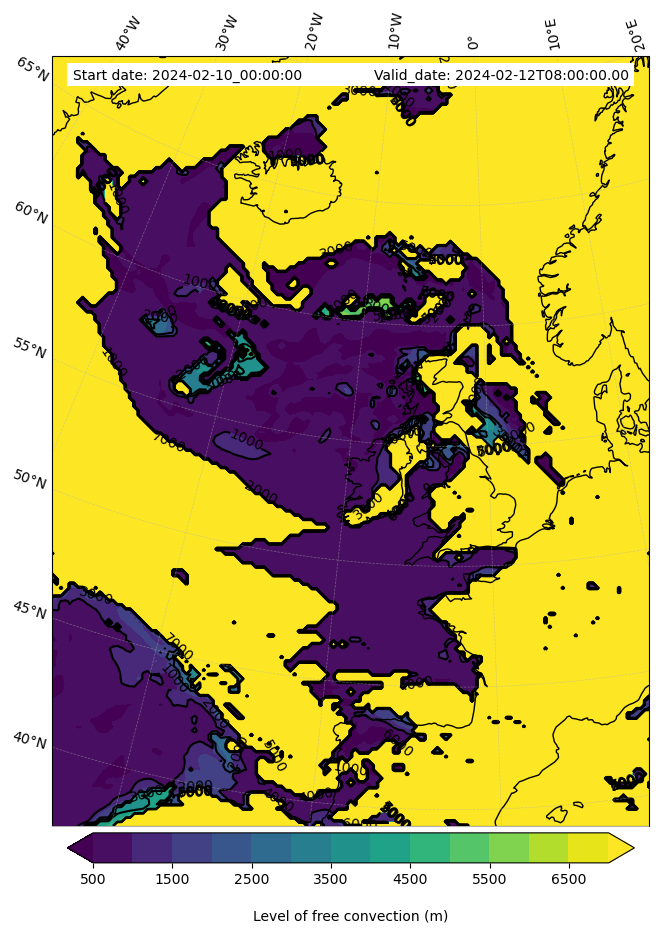 • Level of free convection (m)