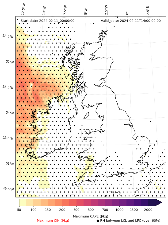 - Maximum CAPE (J/Kg)