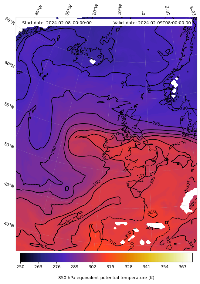 - Equivalent Potential Temperature (K)