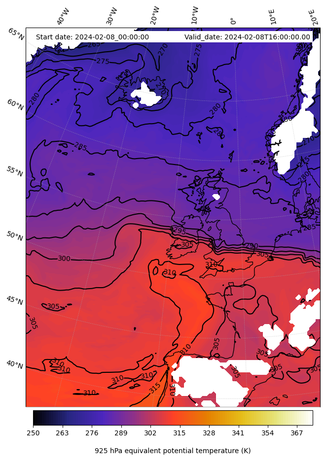 - Equivalent Potential Temperature (K)