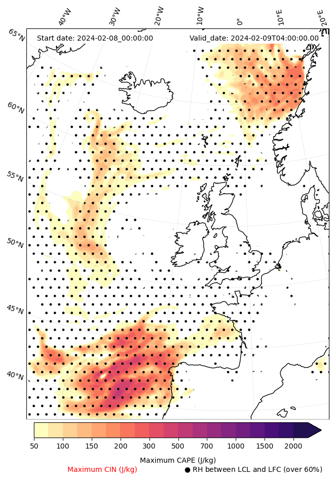 • Maximum CAPE (J/Kg)