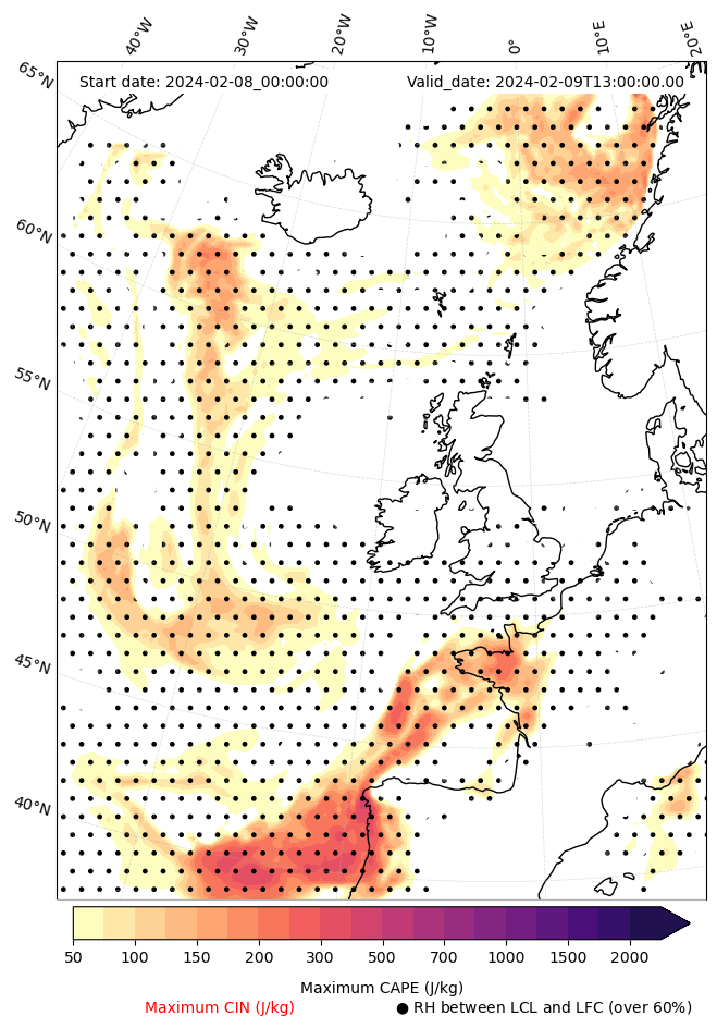 • Maximum CAPE (J/Kg)