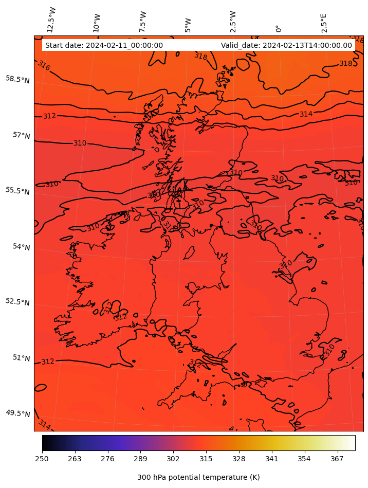 - Equivalent Potential Temperature (K)- 300 hPa