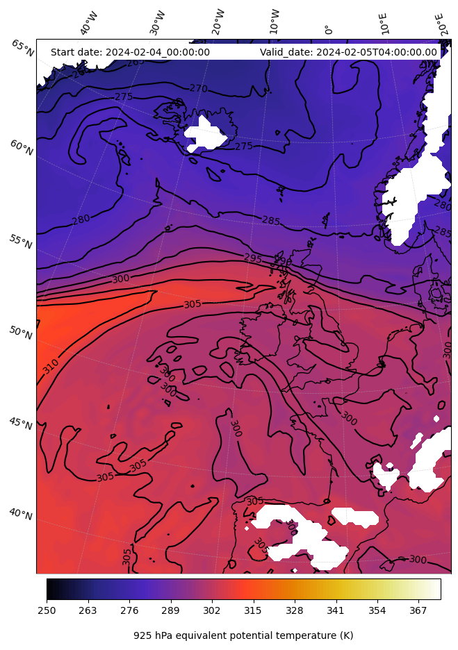- Equivalent Potential Temperature (K)