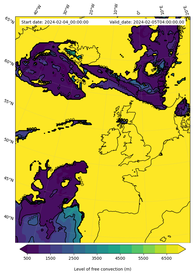 - Level of free convection (m)