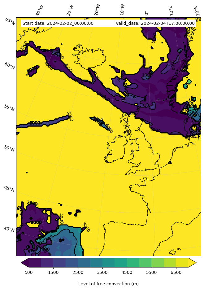 • Level of free convection (m)