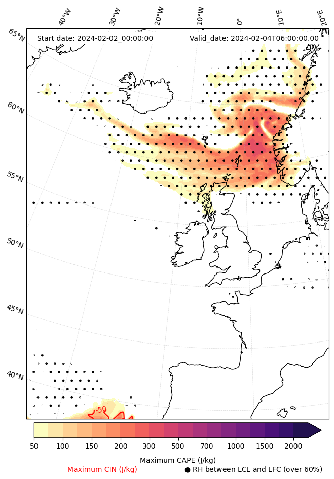 - Maximum CAPE (J/Kg)