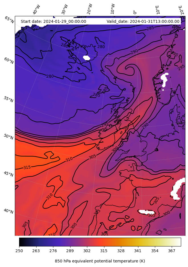 - Equivalent Potential Temperature (K)