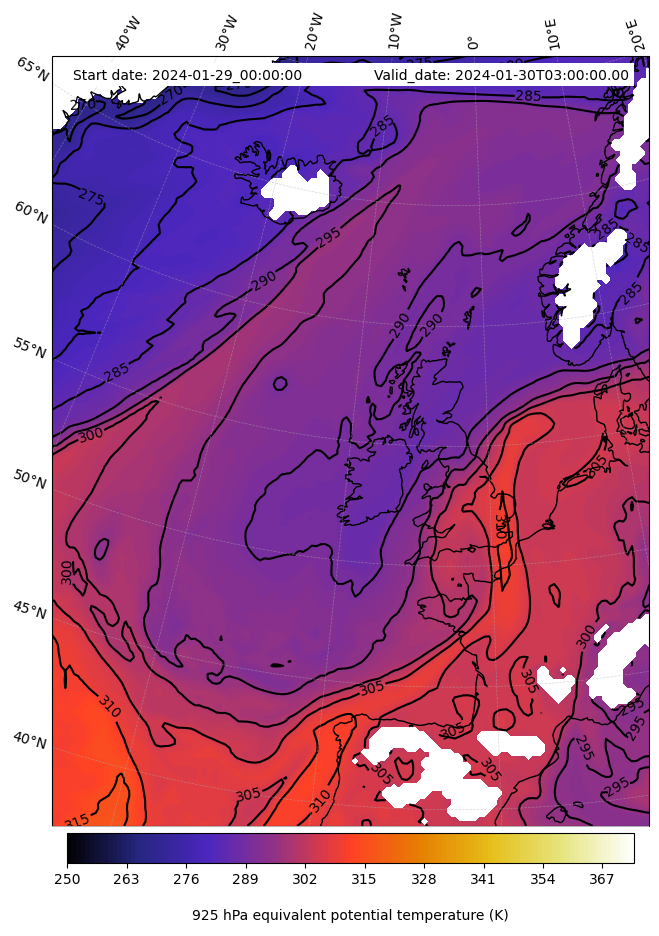 - Equivalent Potential Temperature (K)