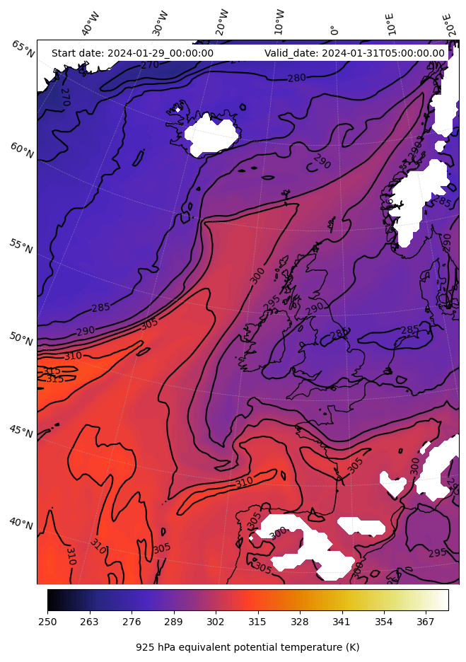 - Equivalent Potential Temperature (K)