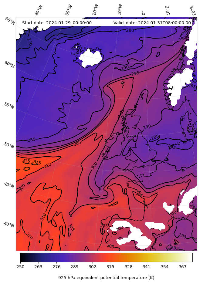 - Equivalent Potential Temperature (K)