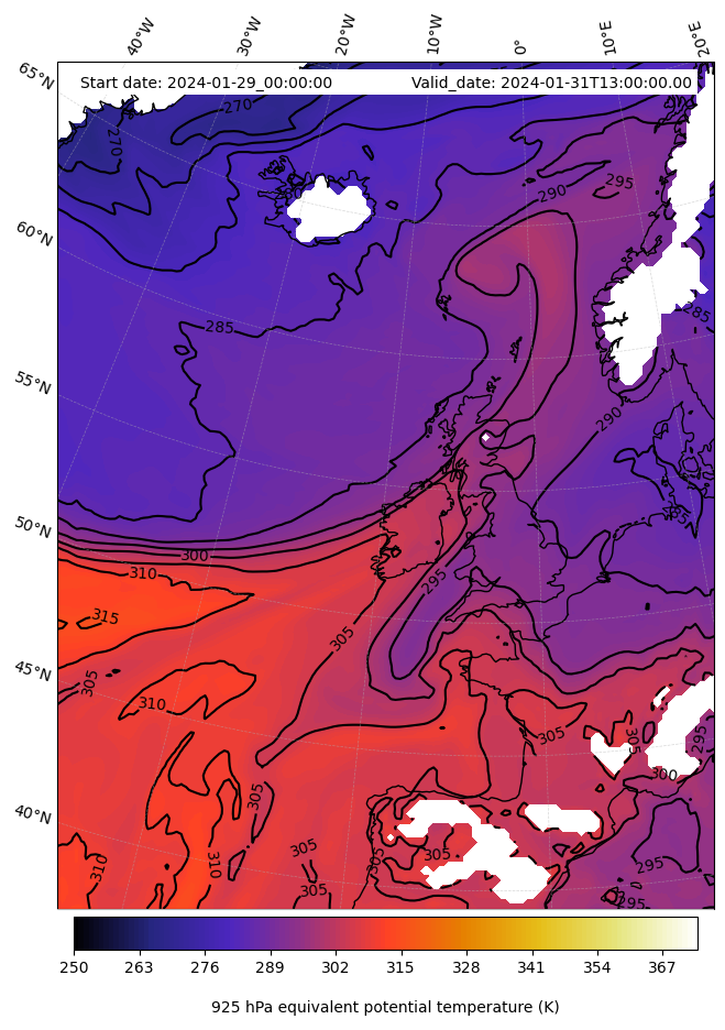 - Equivalent Potential Temperature (K)