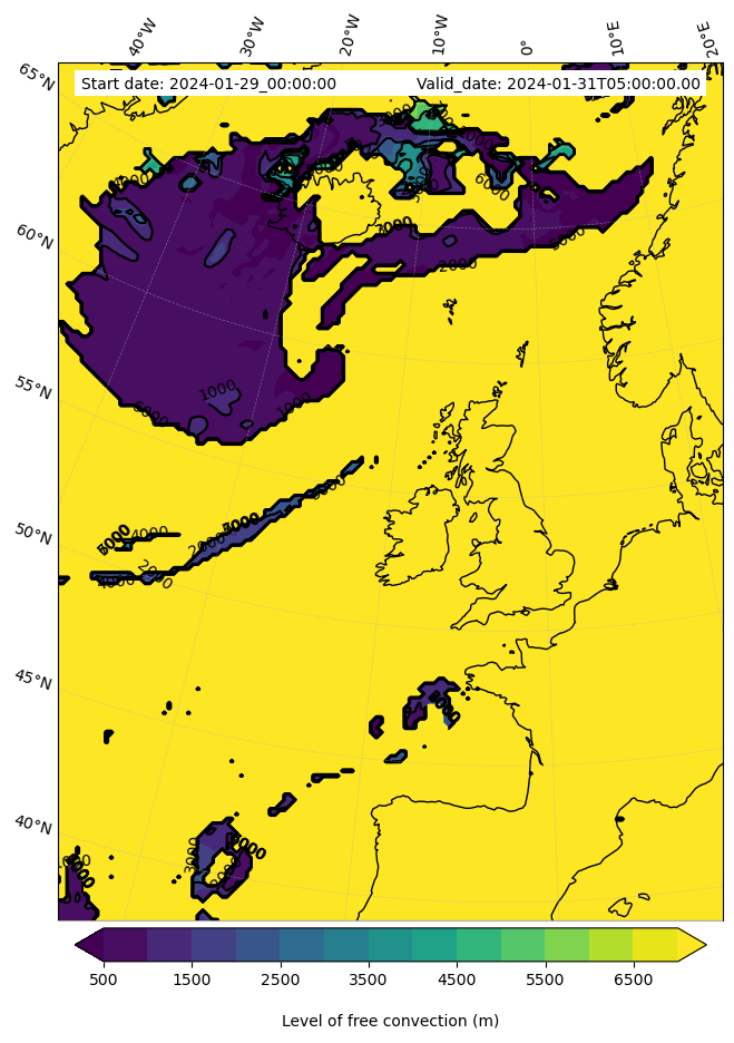 • Level of free convection (m)