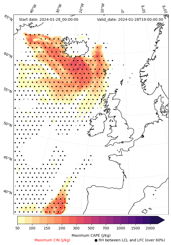 - Maximum CAPE (J/Kg)