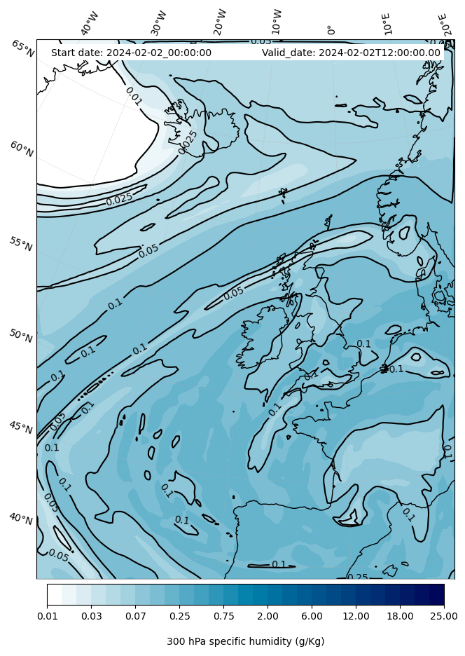 - Water vapor mixing ratio (g kg¯¹)- 300 hPa