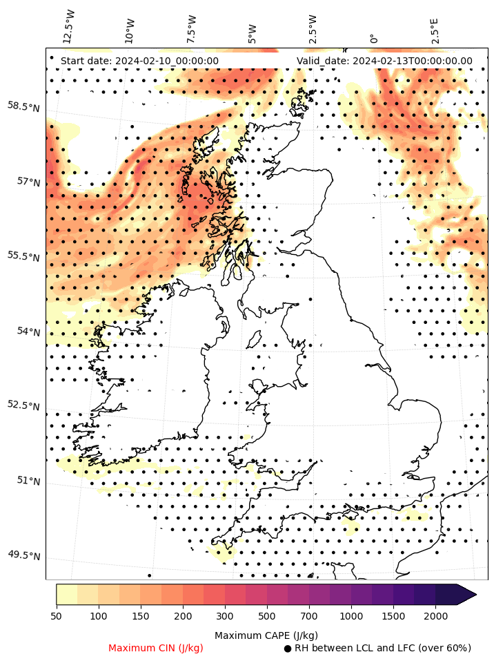 • Maximum CAPE (J/Kg)