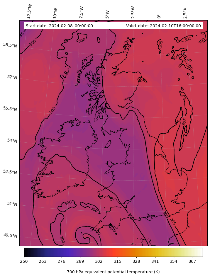 - Equivalent Potential Temperature (K)