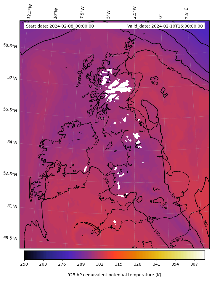 - Equivalent Potential Temperature (K)
