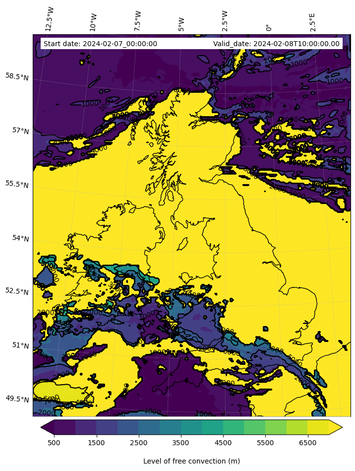 • Level of free convection (m)