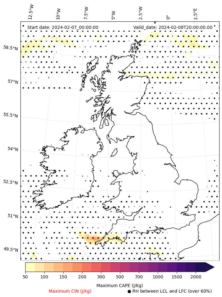 • Maximum CAPE (J/Kg)